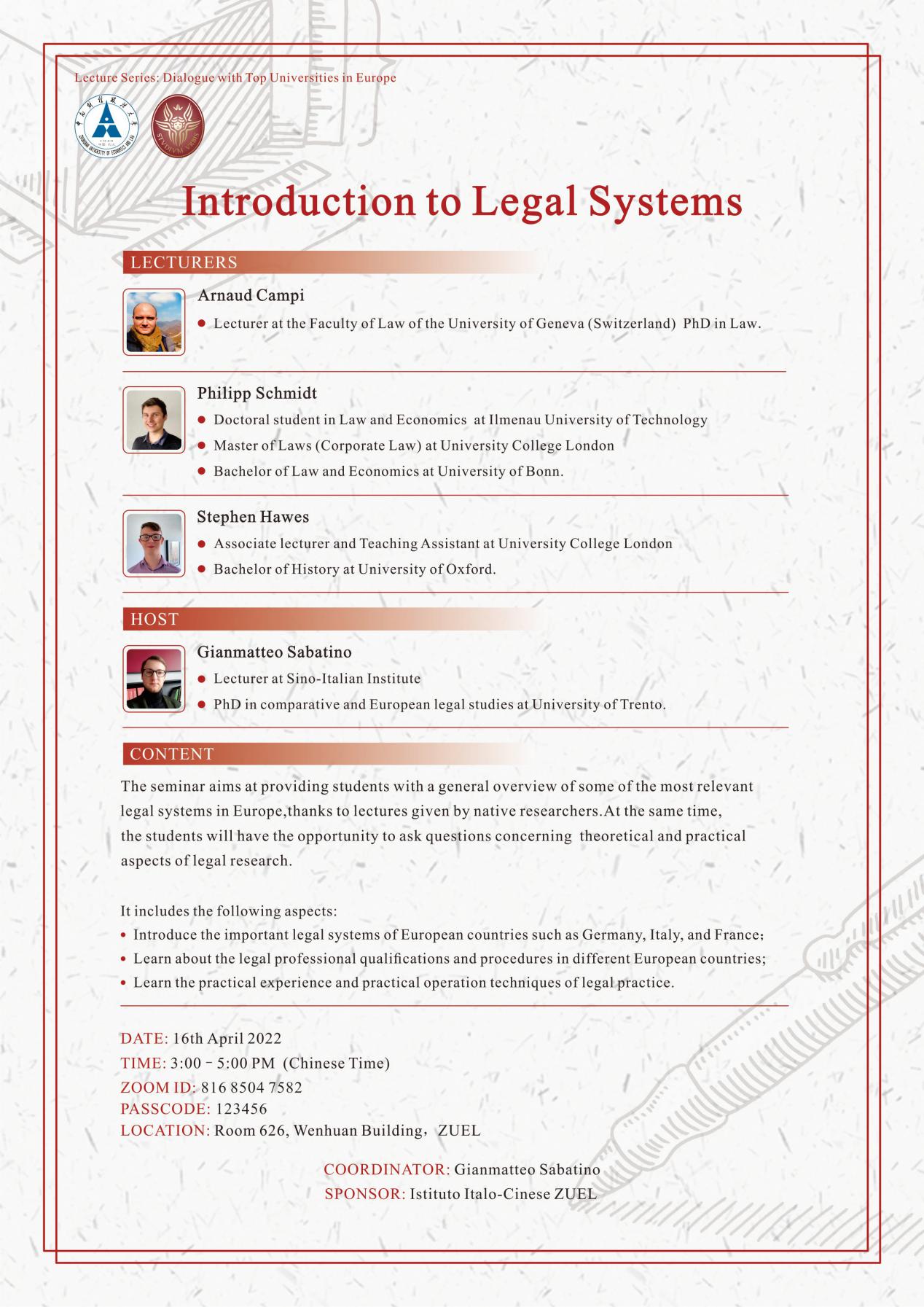 讲座主题:Introduction to Legal Systems